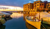 Sirmione ist eine malerische Stadt in Italien, die in der Region Lombardei liegt. Sie befindet sich am Südufer des Gardasees und ist bekannt für ihre atemberaubende Lage, die von einer beeindruckenden Halbinsel geprägt ist. Sirmione ist berühmt für ihre Thermalquellen, die seit der Antike geschätzt werden, sowie für die gut erhaltenen historischen Stätten, darunter die Scaligerburg und die Ruinen der römischen Villa "Grotte di Catullo". Die Stadt hat eine reiche Geschichte, die bis in die römische Zeit zurückreicht, und war ein beliebter Rückzugsort für wohlhabende Familien und Künstler.
